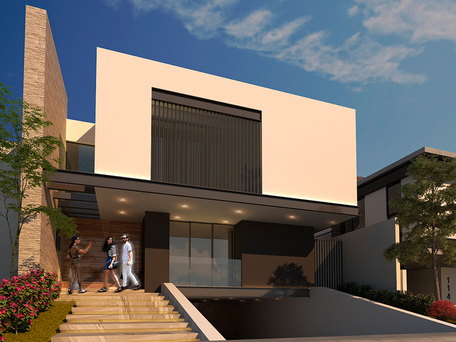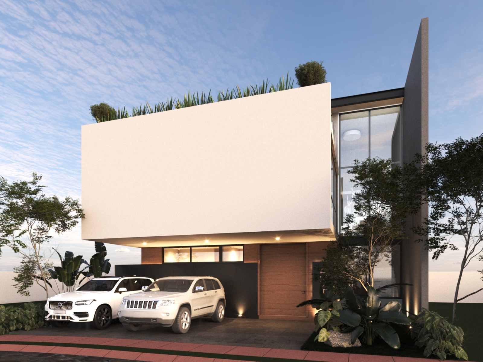 Esta vivienda se construye en un terreno de 274.62 m2 en el que se distribuyen perfectamente 396.52m2 de construcción en 3 plantas.